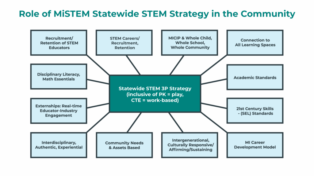 Our partnership leverages Michigan’s statewide 3P (place, project and problem-based) STEM strategy, directly connecting employers from the TAT with PreK-12 students and teachers. Our goal is to align the State of Michigan’s strategic industries with authentic, experiential learning models to inspire Michigan’s youth and build competitive, cross-industry talent pathways for future careers in advanced manufacturing, including EV and mobility, semiconductor, aerospace and defense.