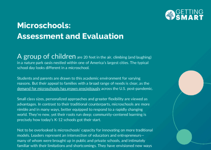 This resource from Getting Smart explores how microschools across the U.S. are effectively meeting the needs of students who are often underserved in traditional school settings. It highlights examples of microschools serving students with disabilities, those in foster care, students recovering from trauma, and others needing flexible, personalized learning environments. The report showcases innovative approaches to education, such as trauma-informed instruction, individualized pacing, and family-centered support.